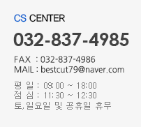 사업장주소지 인천광역시 연수구 송도미래로 30 (송도동 송도 brc 스마트밸리 지식산업센터) B동 117호 (우)21990 | Tel : 032-837-4985 | Fax : 032-837-4986 | Email : bestcut79@naver.com